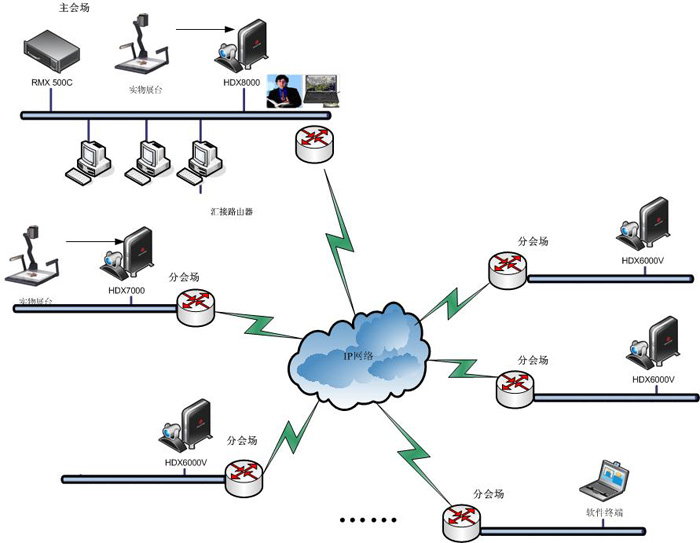 根據用戶的實際情況和需求,我們為用戶推薦使用了寶利通卓越系列高清產品。上海風電公司總部采用100M電信光纖接入,各分公司采用5M-10M電信寬帶。帶寬及采用同家運營商的網絡情況較為理想。這也為會議的正常召開確立了良好的基礎。我們在上??偛吭O置了一臺外置 MCU RMX500,總部采用高清終端HDX8000,同時,在上海、江蘇、黑龍江等分公司各配置了一臺高清終端HDX7000,建立起多點點的會議系統。
